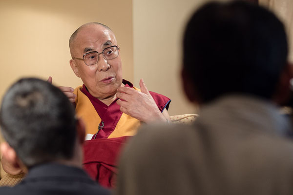 ཟླ་འདིའི་ཚེས་ ༢༦ ཉིན་བཞུགས་སྒར་༸རྒྱལ་བའི་ཕོ་བྲང་དུ་༸གོང་ས་མཆོག་གིས་བཙན་བྱོལ་བོད་མིའི་སློབ་གྲྭ་ཁག་གི་སཱི་ཤེས་ཡོན་སློབ་གསོའི་མཐུན་སྦྱོར་བ་རྣམས་དང་། སཱ་ར་མཐོ་སློབ་དང་ཨེ་མོ་རི་མཐོ་སློབ་བར་གྱི་ཤེས་ཡོན་བརྗེ་ལེན་ལས་གཞིའི་དགེ་སློབ་རྣམས་ལ་མཇལ་ཁ་དང་བཀའ་སློབ་བསྩལ་འདུག།