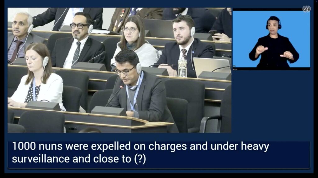 ཚོགས་ཆེན་གྱི་ཉིན་དང་པོར། སུད་སི་དོན་ཁང་གི་མཉམ་འབྲེལ་རྒྱལ་ཚོགས་སུ་བོད་དོན་ཞུ་གཏུག་ལས་བྱེད་ཕུན་ཚོགས་སྟོབས་རྒྱལ་གྱིས་འཛམ་གླིང་ནང་སྙན་གྲགས་ཆེ་ཤོས་གྲས་ཡིན་པའི་ནང་པའི་སློབ་གཉེར་ཁང་བླ་རུང་སྒར་གྱི་ཛ་དྲག་གི་གནས་སྟངས་གཙོ་བོ་བཟུང་ནས་གཏམ་བཤད་བྱས་ཡོད་པ་དང། གཏམ་བཤད་ཀྱི་ནང། རྒྱ་གཞུང་གིས་མི་བདེན་རྫུན་སྒྲིག་གིས་ཉེས་འཛུགས་བྱས་ཏེ། བླ་རུང་སྒར་ནས་གྲྭ་བཙུན་༡༠༠༠ ལྷག་བཙན་གྱིས་ཕྱིར་འབུད་བཏང་ཡོད་པ་དང། ས་ཁོངས་ཡོངས་རྫོགས་དམ་དྲག་དང་ལྟ་སྲུང་ནན་པོའི་འོག་གནས་ཡོད་པ་དང་། ད་ཆ་གནས་མཇལ་བ་རྣམས་ཀྱང་དེར་འགྲོ་བསྐྱོད་བྱེད་པར་བཀག་སྡོམ་བྱས་ཡོད་པ་བརྗོད་འདུག