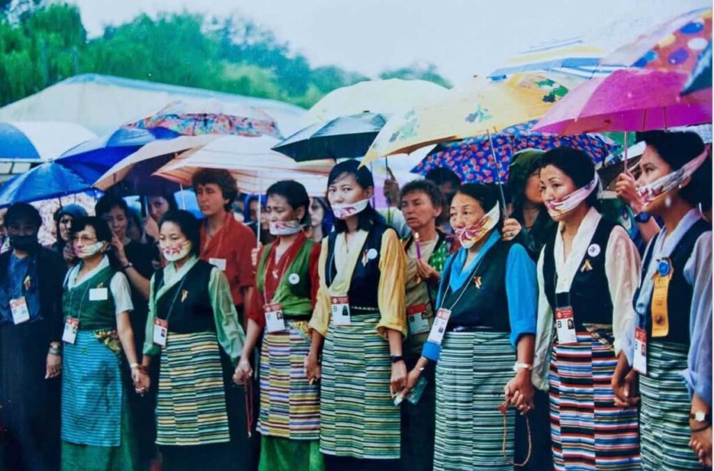 ཕྱི་ལོ་༢༠༢༥ ཟླ་༡༢ ཚེས་༥ ཉིན་གྱི་ཞོགས་པའི་ཆུ་ཚོད་༡༠།༠༠ ཐོག བོད་ཀྱི་བུད་མེད་ལྷན་ཚོགས་ཀྱིས་དྷ་ས་ས་གནས་འགོ་འཛིན་ཚོགས་ཁང་དུ། ཕྱི་ལོ་༡༩༩༥ ལོར་རྒྱ་ནག་གི་རྒྱལ་ས་པེ་ཅིང་དུ་འཛམ་གླིང་མཉམ་འབྲེལ་རྒྱལ་ཚོགས་ཀྱི་བུད་མེད་ཚོགས་ཆེན་ཐེངས་བཞི་པའི་སྐབས། བཙན་བྱོལ་བོད་ཀྱི་བུད་མེད་སྐུ་ཚབ་རྣམ་པ་དགུས་རང་ཡུལ་དུ་སྨྲ་བརྗོད་རང་དབང་མེད་པར་ངོ་རྒོལ་བྱས་ནས་ལོ་ངོ་༣༠ འཁོར་བའི་དུས་དྲན་སྲུང་བརྩི་ཞུས་སོང་།
