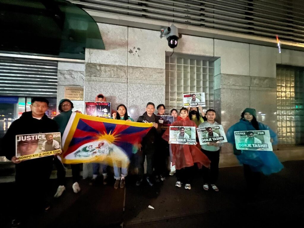 བོད་རང་བཙན་སློབ་ཕྲུག་ཚོགས་པའི་ཚོགས་མི་དྲུག་གིས་ནིའུ་ཡོག་ཏུ་ཡོད་པའི་རྒྱ་ནག་གི་གཞུང་ཚབ་མདུན་དུ་ཟས་བཅད་ངོ་རྒོལ་གྱི་ལས་འགུལ་སྤེལ་འདུག