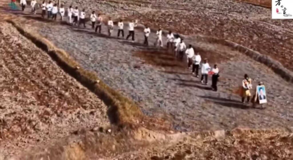 ཕྱི་ཟླ་༣ ཚེས་༡༨ ཉིན། དྲ་ལམ་ཁག་ཏུ་གནས་ཚུལ་སྤེལ་གསལ་ལྟར་ན། ཉེ་ཆར་བོད་རང་སྐྱོང་ལྗོངས་ཟེར་བའི་ཁྱབ་ཁོངས་ས་གནས་ཤིག་ཏུ་བོད་ཀྱི་སོ་ནམ་འདེབས་ལས་འགོ་འཛུགས་བྱེད་པའི་སྐབས། ས་གནས་དཔོན་པོ་འགའ་ཤས་ཀྱིས། དྲིལ་བསྒྲགས་དང་རྒྱ་ནག་གི་སྲིད་འཛིན་ཞི་ཅིན་ཕིང་ལ་སྤྲེལ་ལད་འཁྲབ་ཐབས་སུ། ཞི་ཅིན་ཕིང་གི་འདྲ་པར་ཆེན་པོ་ཞིག་གིས་སྣེ་ཁྲིད་པའི་རྗེས་སུ་ལྭ་བ་དཀར་པོ་གྱོན་ཞིང་ལག་ཏུ་ཁ་བཏགས་དཀར་པོ་འཛིན་མཁན་བོད་མི་མང་པོ་ཞིག་གིས་བྲོ་འཁྲབ་པ་དང་བང་བསྒྲིགས་ནས་འགྲོ་བཞིན་པའི་བརྙན་དང་པར་དྲ་ཐོག་ཏུ་སྤེལ་ཡོད་འདུག
