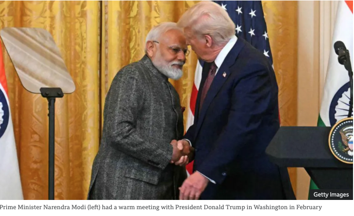 ཕྱི་ཚེས་༣༡ ཉིན་བྷི་བྷི་སི་གསར་ཁང་གཙོས་པའི་གསར་ཁང་གཞན་ཚོས་གནས་ཚུལ་སྤེལ་གསལ་ལྟར་ན། ཁ་སང་ཕྱི་ཚེས་༣༠ ཉིན་ཨ་རིའི་སྲིད་འཛིན་གྱིས་སྒེར་གྱི་སྤྱི་ཚོགས་དྲྭ་ལམ་ཐོག་ཏུ་གནས་ཚུལ་སྤེལ་དོན་ལ། རྒྱ་གར་གྱི་དངོས་ཟོག་ཐོག་ཏུ་སྒོ་ཁྲལ་བརྒྱ་༢༥ འགེལ་རྒྱུ་ཡིན་པར་བརྗོད་འདུག འོན་ཀྱང་། ད་དུང་རྒྱ་གར་གྱིས་ཨུ་རུ་སུ་ནས་གོ་མཚོན་དང་སྣུམ་ཉོས་པ་ལ་བརྟེན་ནས། ཉེས་ཆད་ག་ཚོད་གཅོད་རྒྱུ་ཡིན་མིན་ཁ་གསལ་མི་འདུག སྤྱིར་བཏང་སྲིད་འཛིན་ཊོམ་གྱིས་ཨུ་རུ་སུ་ནས་སྣུམ་དང་གོ་མཚོན་རིགས་ཉོ་མཁན་ཚོར་སྒོ་ཁྲལ་འགེལ་རྒྱུ་ཡིན་པ་དང་། ཨུ་རུ་སུ་ནས་དངོས་ཟོག་ག་ཚོད་ཉོས་ནའང་དེ་ཙམ་གྱིས་ཡུག་རེན་མི་མང་གི་ཚེ་སྲོག་འཆོར་བཞིན་ཡོད་པས། དེ་འགོག་ཐབས་ཆེད་དུ་ང་ཚོ་ཚང་མས་ཤུགས་རྒྱག་དགོས་ཚུལ་བརྗོད་འདུག