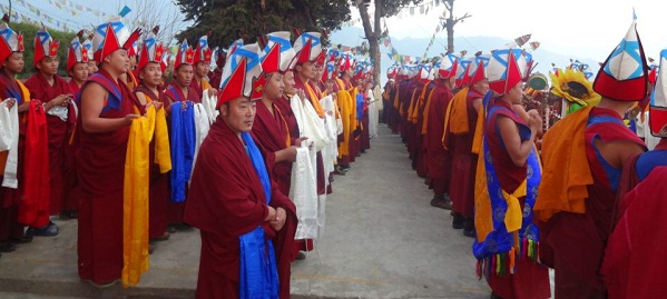 ལྷ་སྡེས་བསུ་ཕྲེང་རྒྱས་གནང་ཐོག །མཁན་སློབ་ཉི་ཟླ་གདན་གཅིག་འཛོམས། །