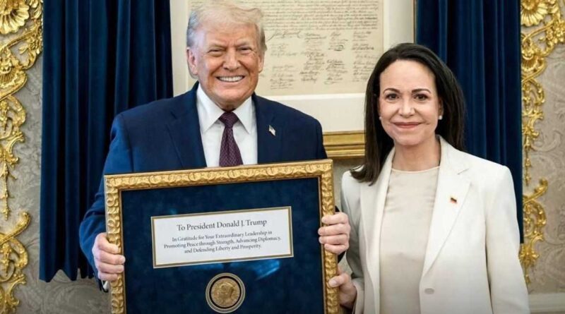 ཝེ་ནེ་ཛུ་ལའི་སྲིད་འཛིན་ཉེ་ཆར་ཨ་རིའི་གཞུང་གིས་འཛིན་བཟུང་བྱས་ནས་ད་ལྟ་ཨ་རིའི་ནང་ཡོད་པ་དང་། ཝེ་ནེ་ཛུ་ལའི་ཕྱོགས་འགལ་ཚོགས་པའི་འགོ་ཁྲིད་མཱ་རི་ཡ་(María Corina Machado)ཡིས་ཁ་སང་ཨ་རིའི་ཕོ་བྲང་དཀར་པོར་ཕྱིན་ནས་སྲིད་འཛིན་ཊོམ་ལ་དེ་སྔོན་མོ་རང་ལ་ཐོབ་པའི་ཞི་བདེའི་གཟེངས་རྟགས་དེ་ཕུལ་ཡོད་འདུག ཕྱི་ལོ་༢༠༢༦ ཟླ་༡ ཚེས་༡༦ ཉིན་བྷི་བྷི་སི་(BBC)གསར་ཁང་གིས་གནས་ཚུལ་སྤེལ་དོན་ལ། ཁ་སང་གཟའ་ཕུར་བུའི་ཉིན་ཝེ་ནེ་ཛུ་ལའི་ཕྱོགས་འགལ་ཚོགས་པའི་འགོ་ཁྲིད་དང་འདི་ལོ་ཕྱི་ལོ་༢༠༢༦